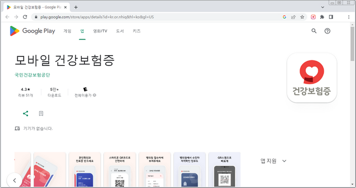 - 검색 후 앱 다운로드: '모바일 건강보험증'을 검색창에 입력해 앱을 찾고, 다운로드 및 설치합니다.