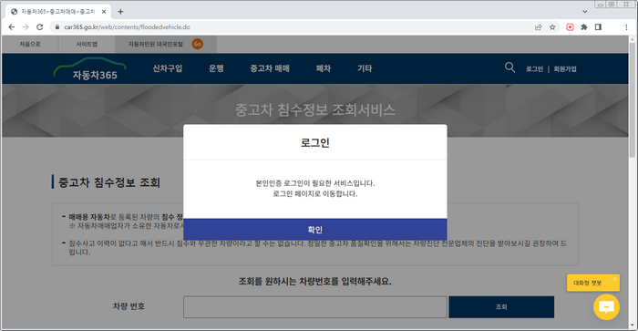 자동차365 침수차량 조회 서비스 개요
