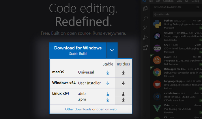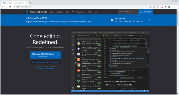 - 비주얼 스튜디오 코드를 다운로드하기 위해서는 먼저 공식 홈페이지인 Visual Studio Code에 접속해야 합니다. 홈페이지는 여러 언어로 제공되므로 사용하기 편리합니다.