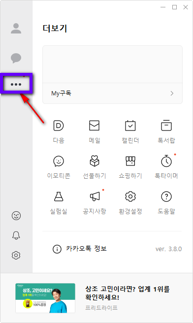 - 카카오톡을 열고, 오른쪽 상단의 '더보기' 메뉴 (점 세 개)를 클릭합니다.