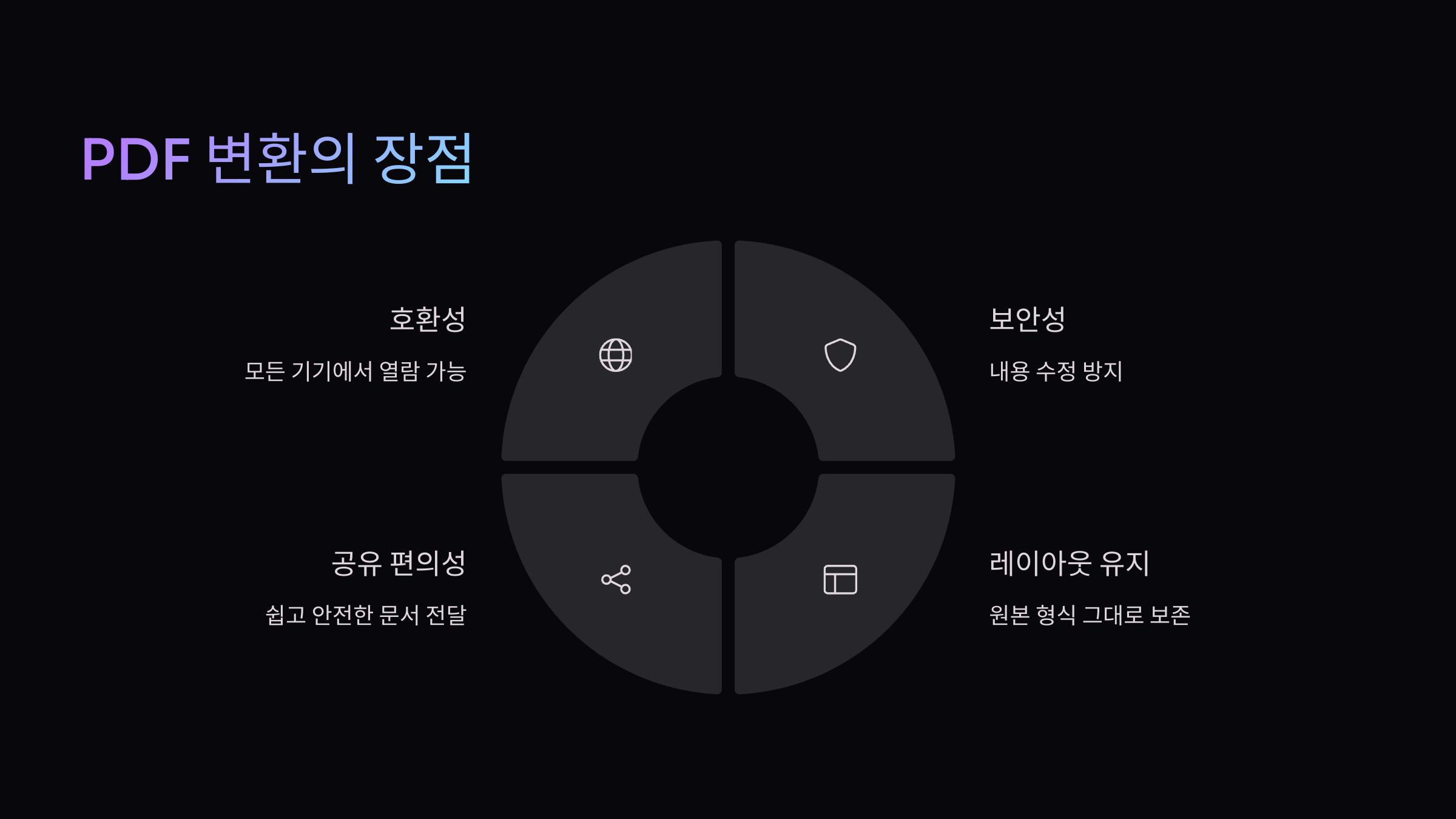 PDF 변환은 진짜 활용도가 높아요. 예를 들어 보고서 다 쓰고 나서 딱 PDF로 변환해서 보내면, 받는 사람이 내용을 함부로 수정할 수 없으니까 안심이 되죠. 개인적으로도 그렇고, 회사에서도 그렇고, 중요한 문서를 안전하게 공유해야 할 때 PDF가 진짜 딱이에요. 특히 수정하면 안 되는 중요한 자료를 보호하고 싶을 때, PDF 변환은 필수라고 할 수 있죠.