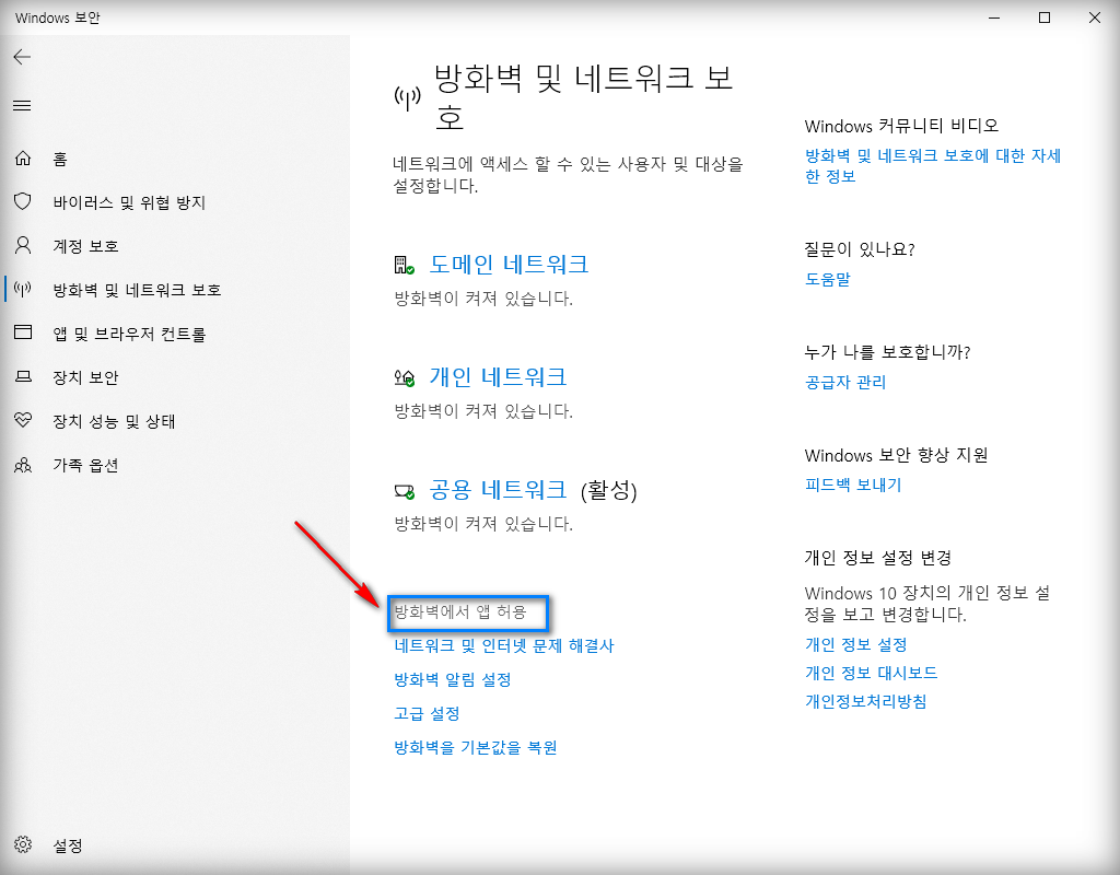 윈도우 10 방화벽에서 포트를 여는 방법도 있나요?