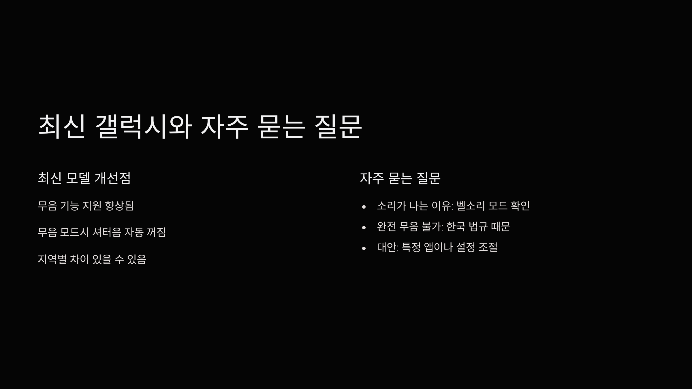 물론 이것도 출시 국가별 법규나 통신사 정책에 따라 다를 수 있어서 모든 모델, 모든 지역에서 완벽하게 무음이 되는 건 아닐 수 있어요. 하지만 확실히 예전보다는 무음 촬영하기가 좀 더 편리해진 건 사실입니다.