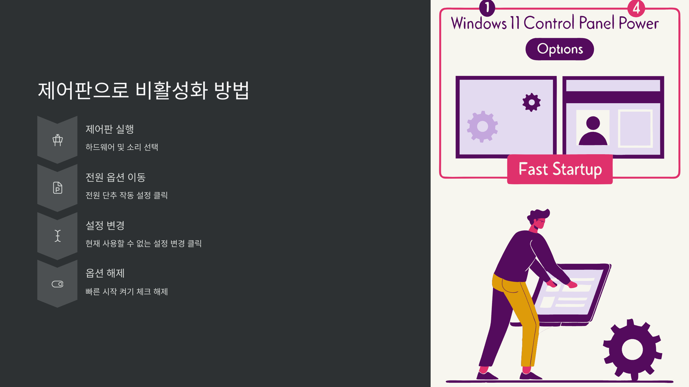 빠른 시작 기능 비활성화 방법은 어떻게 하나요?