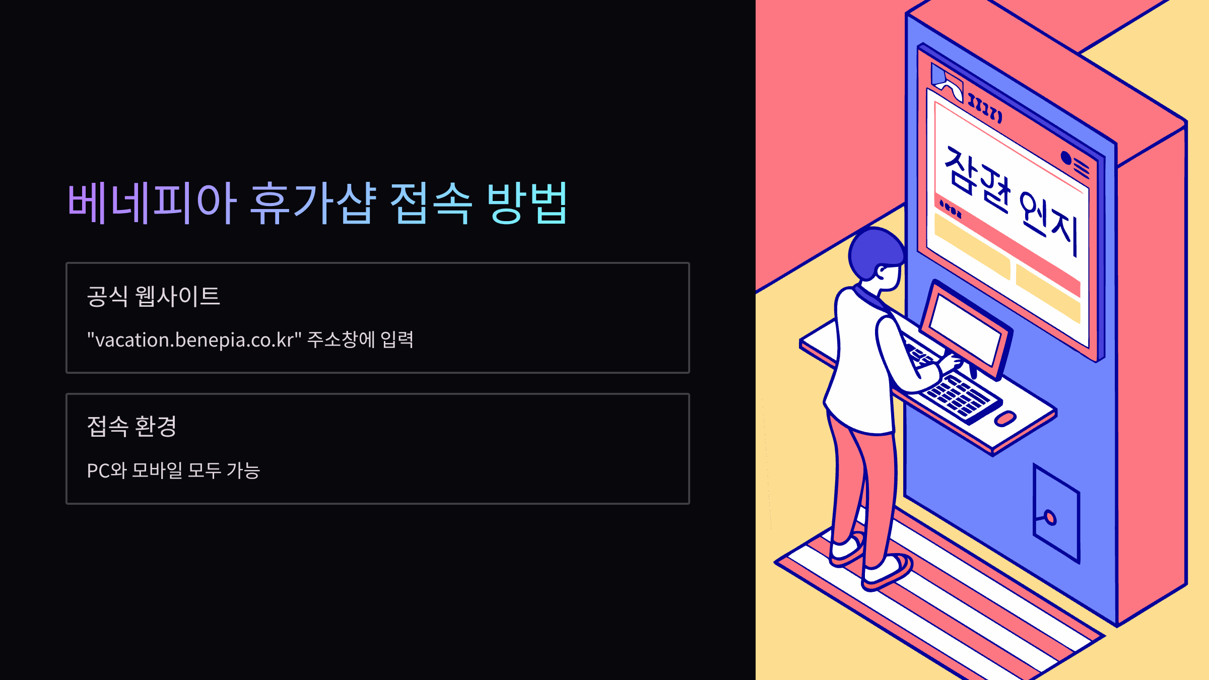 베네피아 휴가샵 홈페이지, 어떻게 바로 접속할 수 있나요?