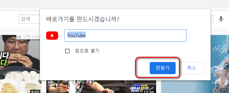 물론 그러려면 자주자주 들어가서 관리를 해주시는게 좋은데요. 크롬 브라우저를 사용해서 유튜브 바로가기를 만들어두신다면 그것도 나름 괜찮은것 같아요.