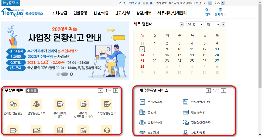 홈텍스 홈페이지 www.hometax.go.kr