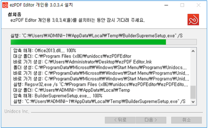 약관 확인 후 동의를 선택하시고 기다리시면 잠시동안 설정된 경로에 프로그램 설치가 진행됩니다. 정상적으로 파일일 복사되고 완료될때까지 기다려 주시기만 하면 됩니다.