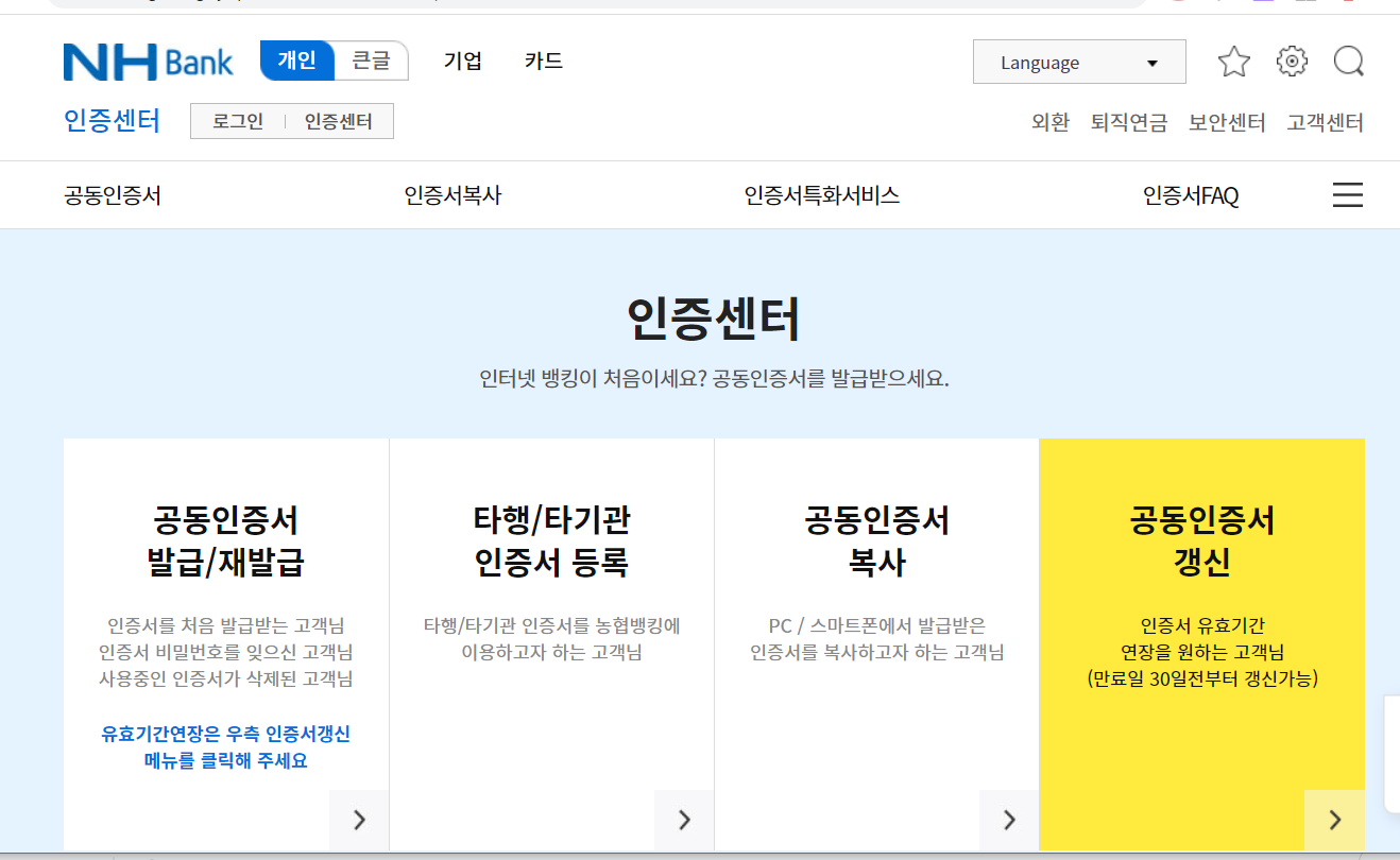 당연히 이런식으로 농협 인터넷뱅킹 바로가기를 찾아서 접속하시게 되면 본인의 계좌를 조회한다거나 이체를 진행할수 있는데요. 여기서 조심하셔야 하는것이 있다면 그건 바로 공인인증서라는게 필요하다는것이죠. 이전이름이 공인이고 바뀐 명칭이 공동인증서 입니다.