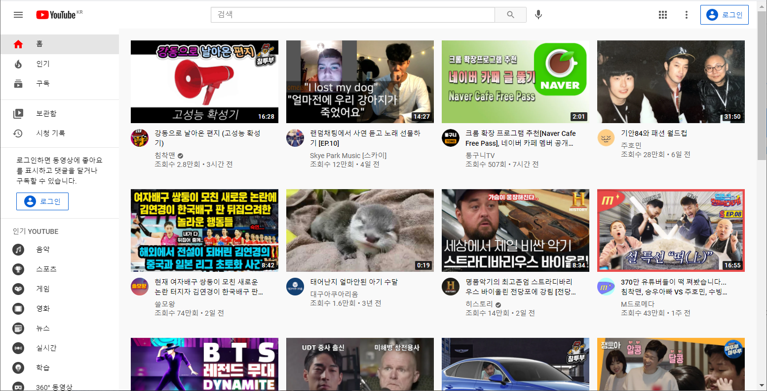 그래서 유튜브 홈페이지를 이용하실때에는 이런부분은 감안하시고 사용하시기 바랍니다. 인기 메뉴를 확인하시면 최신 영상들 중에서 사람들이 많이 보는것을 찾아볼수 있습니다.