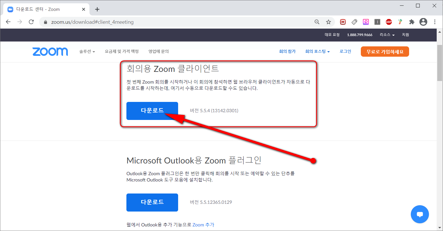 거기에 들어가보시면 회의용 zoom 클라이언트 다운로드를 받을수 있습니다. 이것만 있으면 참여코드를 통해서 전달받은 강의나, 회의에 들어가실수 있습니다. 확인해보시기 바랍니다.