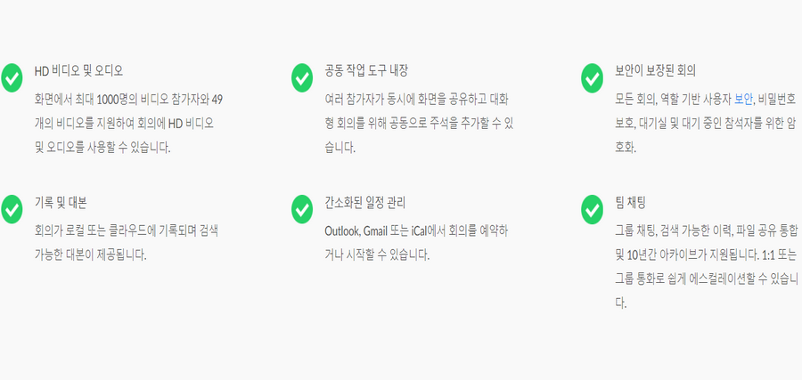 가장 큰 차이가 있다면 그건 기술력같은 것이였습니다. 제일 사람들이 극찬하는 부분은 최대 1000명의 참가자가 동시에 영상을 볼수 있다고 하는데요. 49개의 비디오를 지원해서 많은 인원이 참여를 필요로 하는것에서는 필수였죠.