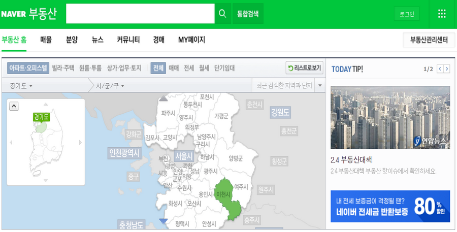 네이버나 다음에서는 뉴스나 블로그, 카페, 메일 등등과 같이 여러가지 서비스를 제공하고 있는데요. 그중에 하나가 바로 부동산 서비스이죠.