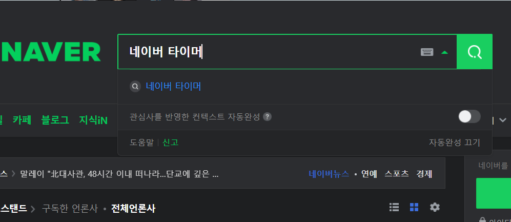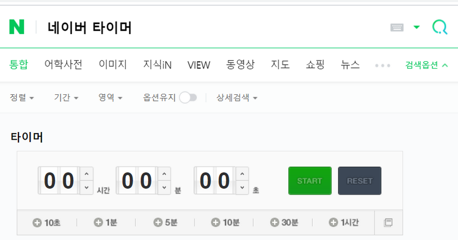 저같은 경우에는 영어에 약하기 떄문에 간단하게 이용하는 편인데요. 일단 네이버에서 타이머를 찾기위해서는 검색기능을 사용하시는것이 좋습니다. 메인페이지를 이용해서 찾아보았지만 아무래도 가벼운 기능이라서 그런지 타이머를 찾기가 어렵더군요.