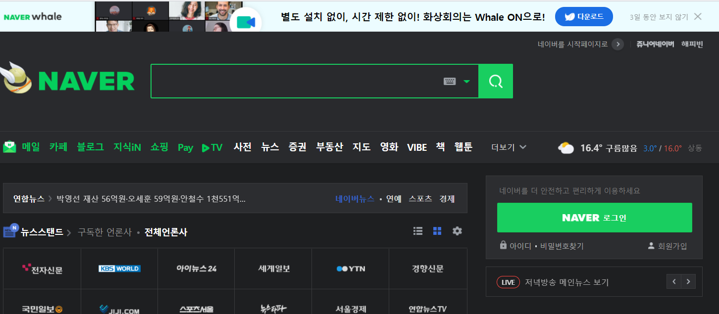 다들 아시겠지만 일단 네이버 타이머를 찾을수 있는 곳을 알아봅시다. 가장 쉬운 방법은 당연히 N사 공식홈페이지에 들어가는 것부터 이겠죠? 주소창에 www.naver.com을 입력하신다거나 검색으로 사이트를 찾으시면 되겠습니다.