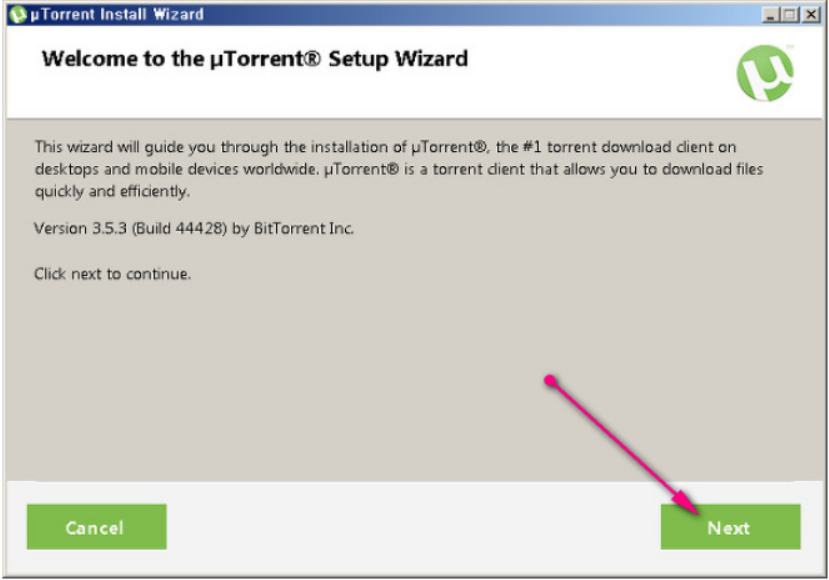 첫번째, 두번째 단계에서는 토렌트에 관한 간단히 내용을 읽어보시고 오른쪽 하단에 Next 버튼을 클릭하시면 토렌트설치가 진행 됩니다.