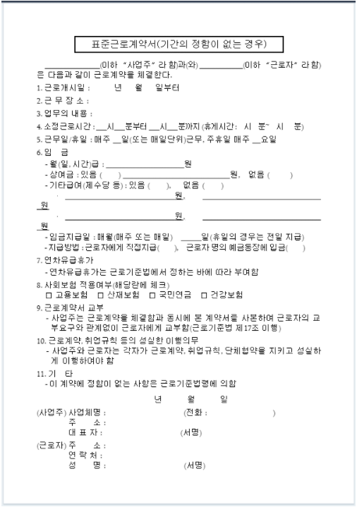 근로자의 입장에서 해당 양식이 불법적이나 불합리한것은 아닌지 말이죠. 많은 분들이 직장을 갑으로 생각하시지만 들어가기 전까지는 내가 갑이라는 마인드로 챙길것은 챙겨야합니다. 그런 양식 무료 다운은 어디에 있을까요?