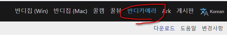 공식 홈페이지에 접속하시면 아래와 같이 상단에 여러가지 소프트웨어 이름이 나타납니다. 우리가 원하는 반디카메라를 선택해주시면 제품페이지에 이동됩니다.