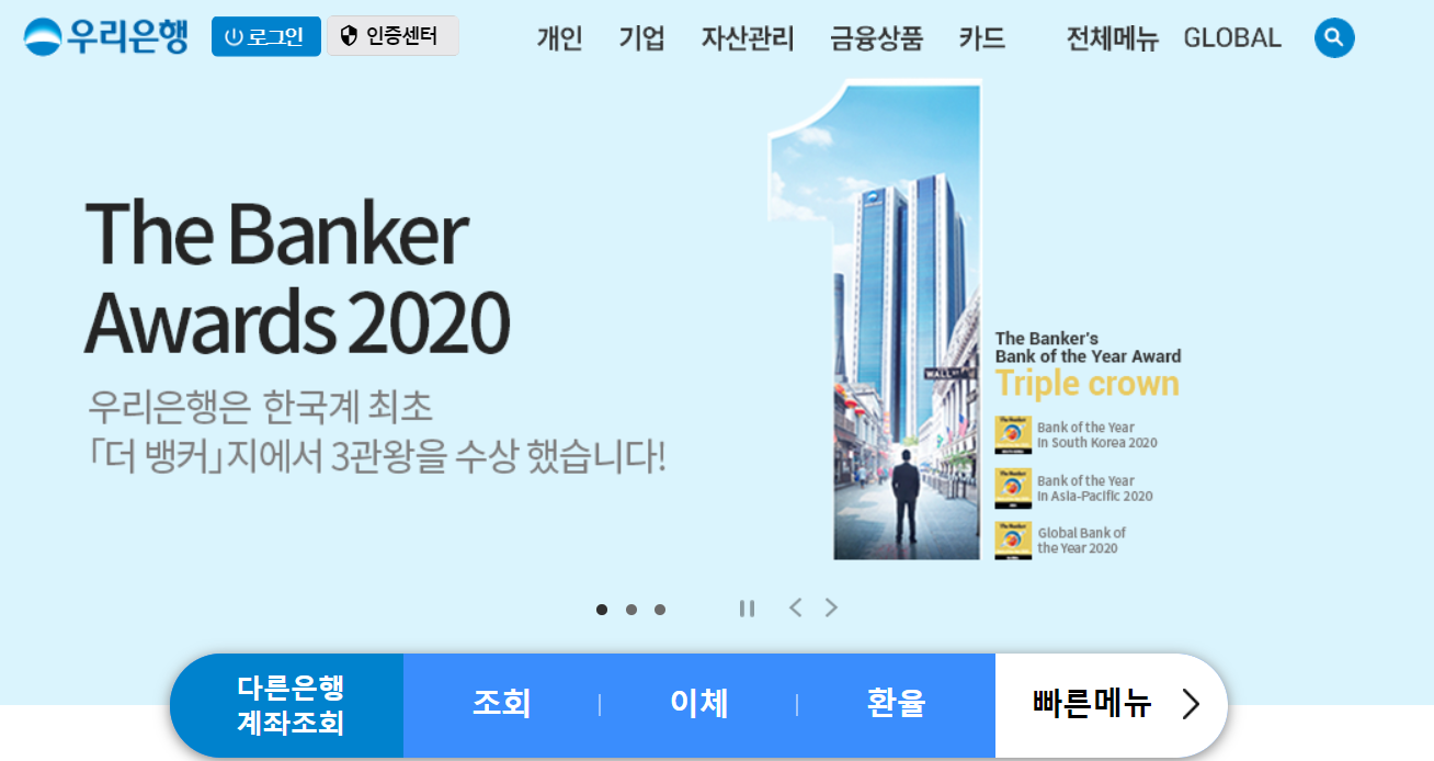 온라인에서 대부분의 서비스를 사용할수 잇는 시대입니다. 그중에서 시간절약에 큰 효과가 있는것은 당연히 인터넷으로 은행업무를 처리할수 있도록 해주는 뱅킹 서비스입니다. 그중에서도 우리은행에 대한것을 알아보도록 하겠습니다.