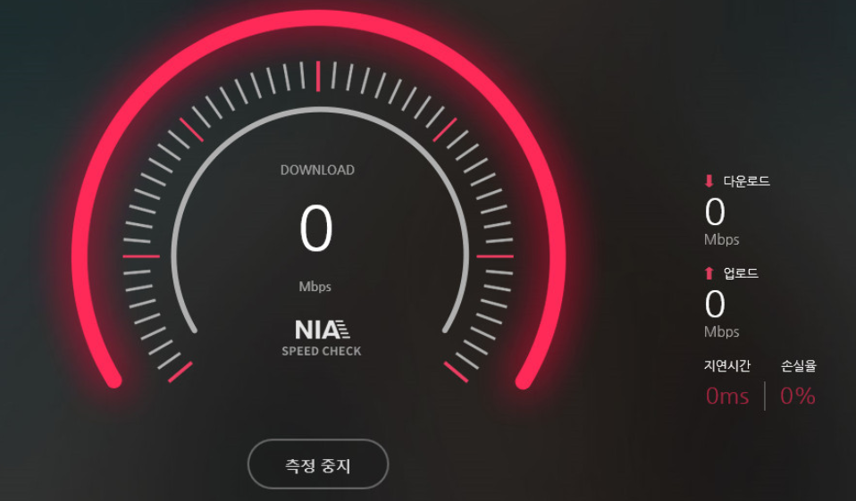 위 설정 작업과 측정프로그램 설치작업이 완료되면 인터넷 속도측정을 진행하시면 됩니다. 항상 광고에서만 보이던 광랜, 빠른인터넷 속도를 직접 확인 할 수 있는 기회입니다. 속도측정 후 현저하게 성능이 낮게 나온다면 통신사에 문의를 해보셔야합니다.