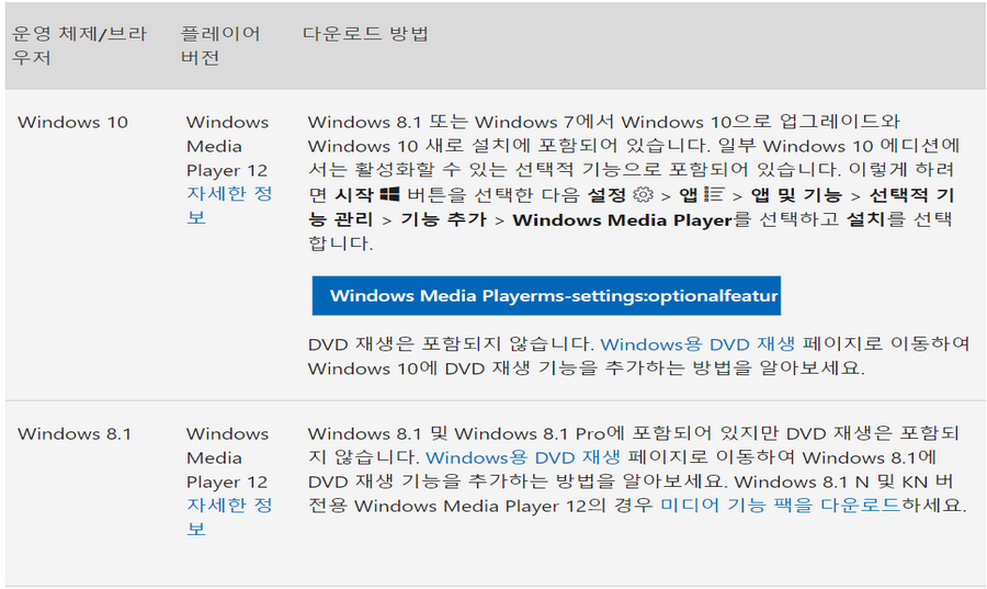 그런 분들은 마이크로소프트 홈페이지에서 윈도우미디어플레이어12를 수동으로 다운로드 받아서 설치하시면 됩니다. 설치과정 및 다운로드 방법도 어렵지 않습니다. 그럼 함께 알아볼께요. 시작해보시죠.