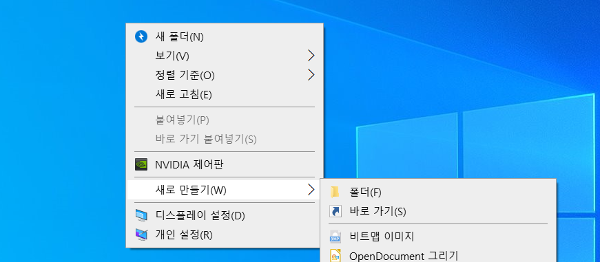 윈도우 같은 경우에는 프로그램이나 별도의 게임, 사이트들에 쉽게 접속, 실행을 할수 있도록 해주는 바로가기 생성기능이 다 포함되어 있는데요. 바탕화면에서 아무공간에서나 마우스 오른쪽 버튼을 눌러보시면 새로만들기 ->> 바로가기라는 항목이 있습니다.