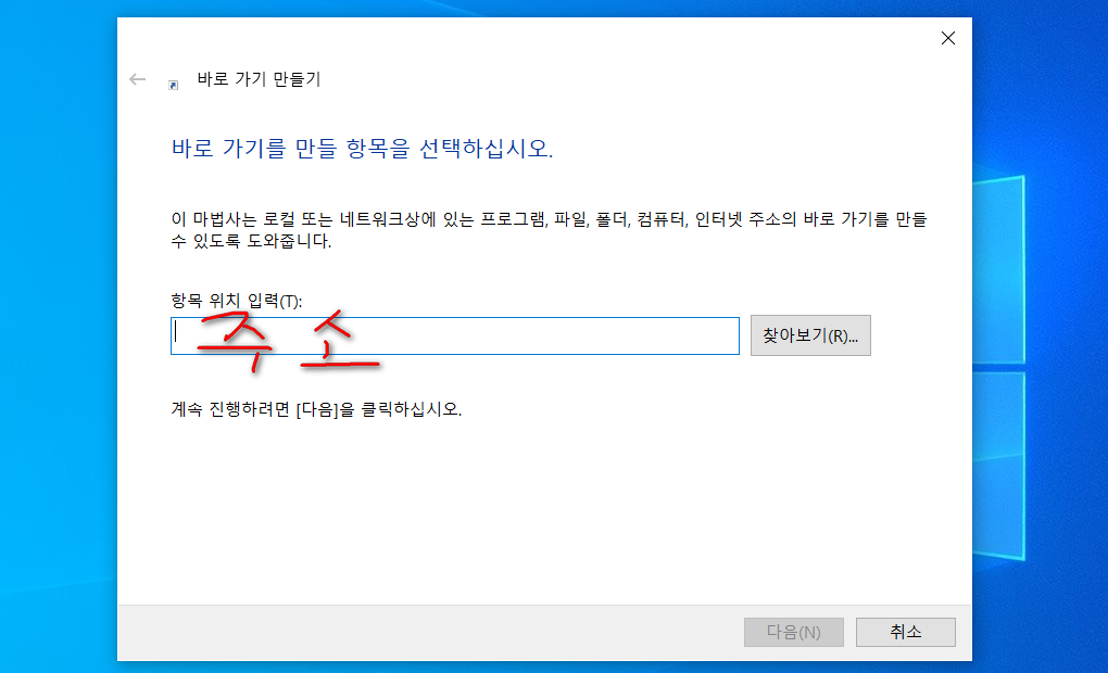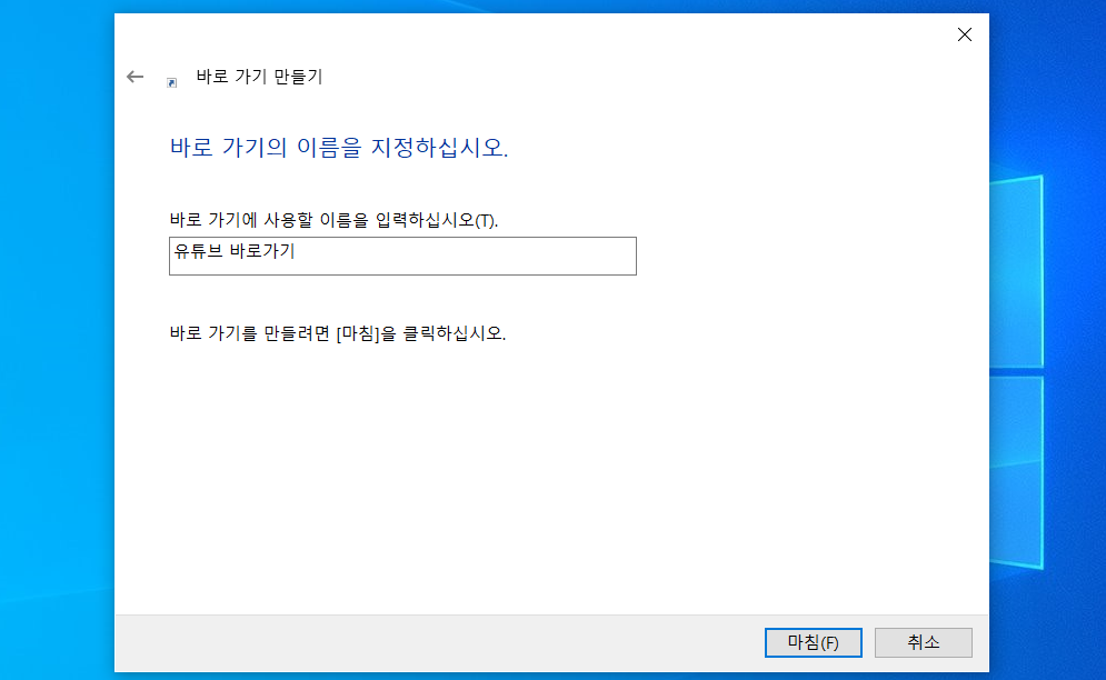 바탕화면 새로만들기→바로가기 후 유튜브 주소 입력하면 끝이에요.