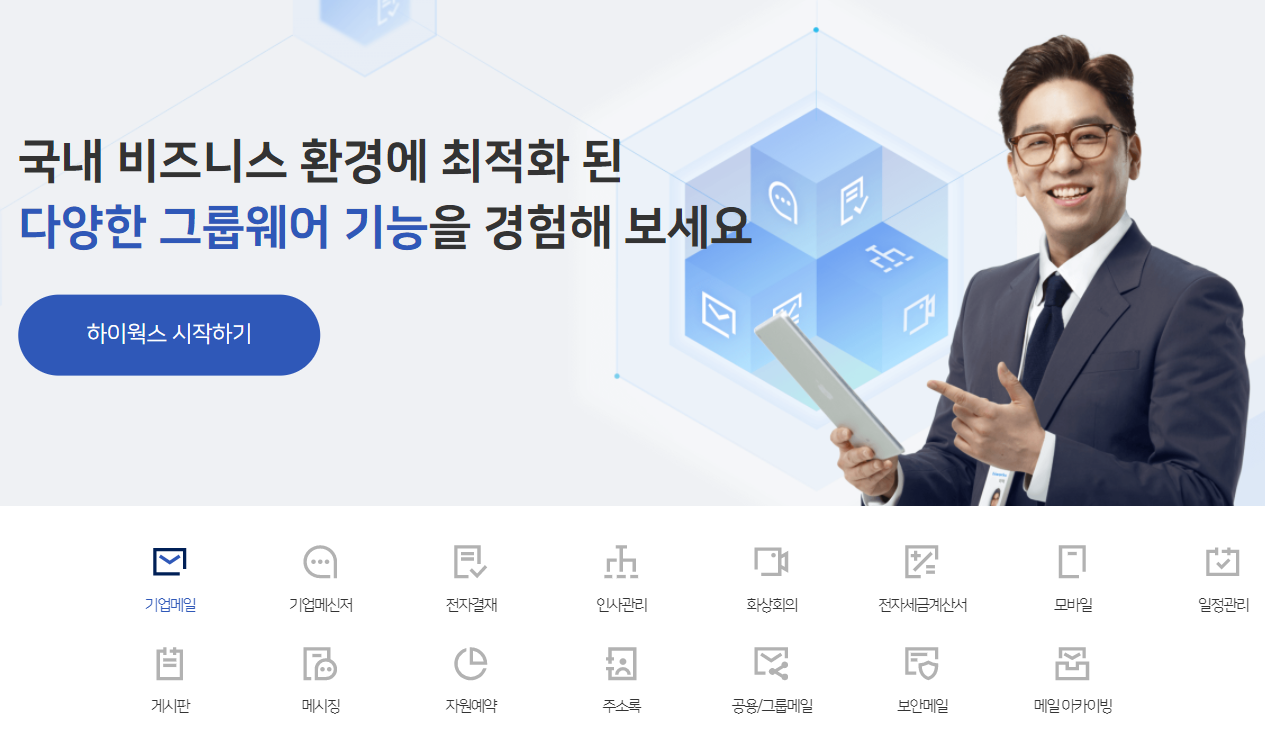 예를 들면 회사생활에서 필수적으로 필요한 기업 이메일 서비스부터 시작해서 전자결재나 메시징, 게시판, 인사관리, 전자세금 계산서 등이 있죠.