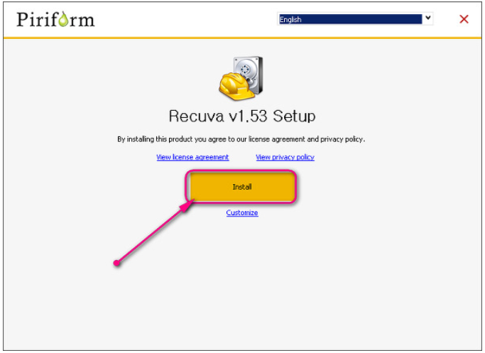 recuva 설치파일 다운로드 후 실행하시면 설치가 시작됩니다. 아쉽게도 인스톨시 나타나는 언어는 영문이죠. 한글판은 공식적으로 제공되지 않는데요. 일단 프로그램을 설치해보겠습니다.