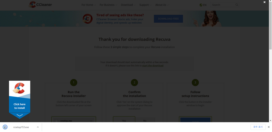 복구 프로그램 다운로드 주소 : https://www.ccleaner.com/recuva/download