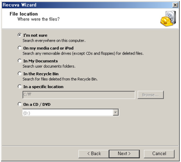 삭제된 파일의 위치나 기타경로를 지정하고 싶은 분들은 경로를 선택하시면 됩니다.