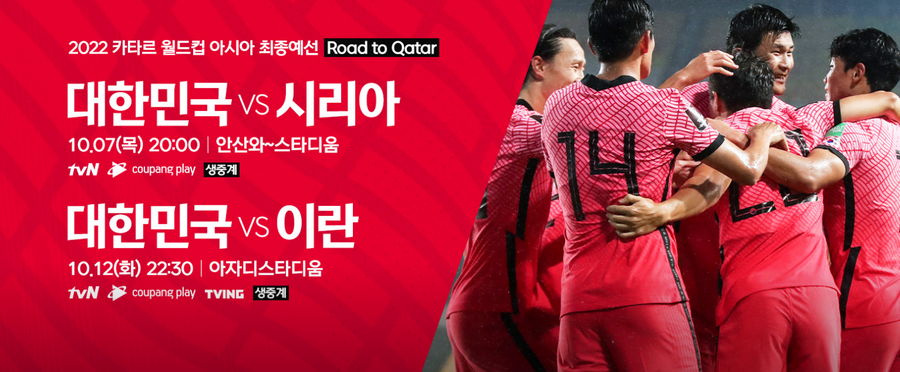 이미 아시는 분들도 있겠지만 2022 카타르 월드컵 최종예선전 경기는 tvn을 통해서 중계가 진행됩니다. 독점 생중계이다보니 나머지 공중파에서는 볼수 없어요. 온라인은 쿠팡 플레이를 통해서 보셔야 하죠.