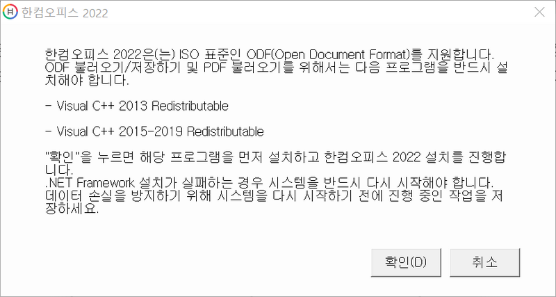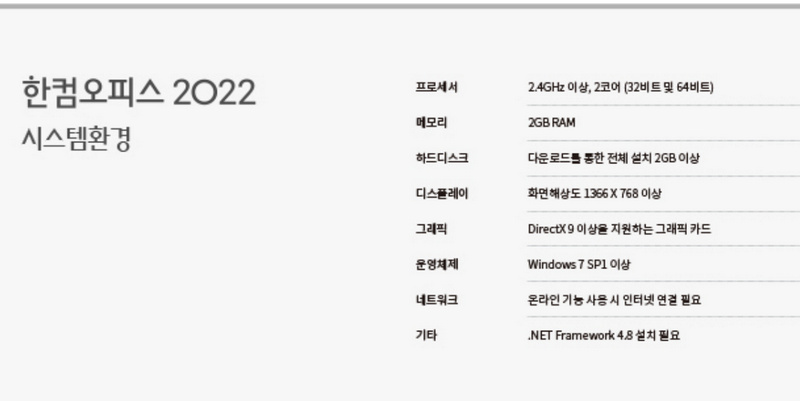 한컴오피스 2022 시스템 요구사항
