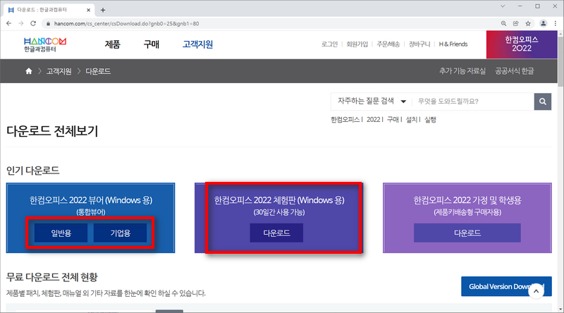 한컴오피스 2022 체험판 (Windows 용) (30일간 사용 가능) --> 한글, 한셀, 한쇼, 한PDF, 개인정보탐색기, 한컴 사전, 한컴 타자연습, 한컴 문서찾기, 한OCR로 구성된 체험판입니다. - PC : Windows 7 이상 / 모