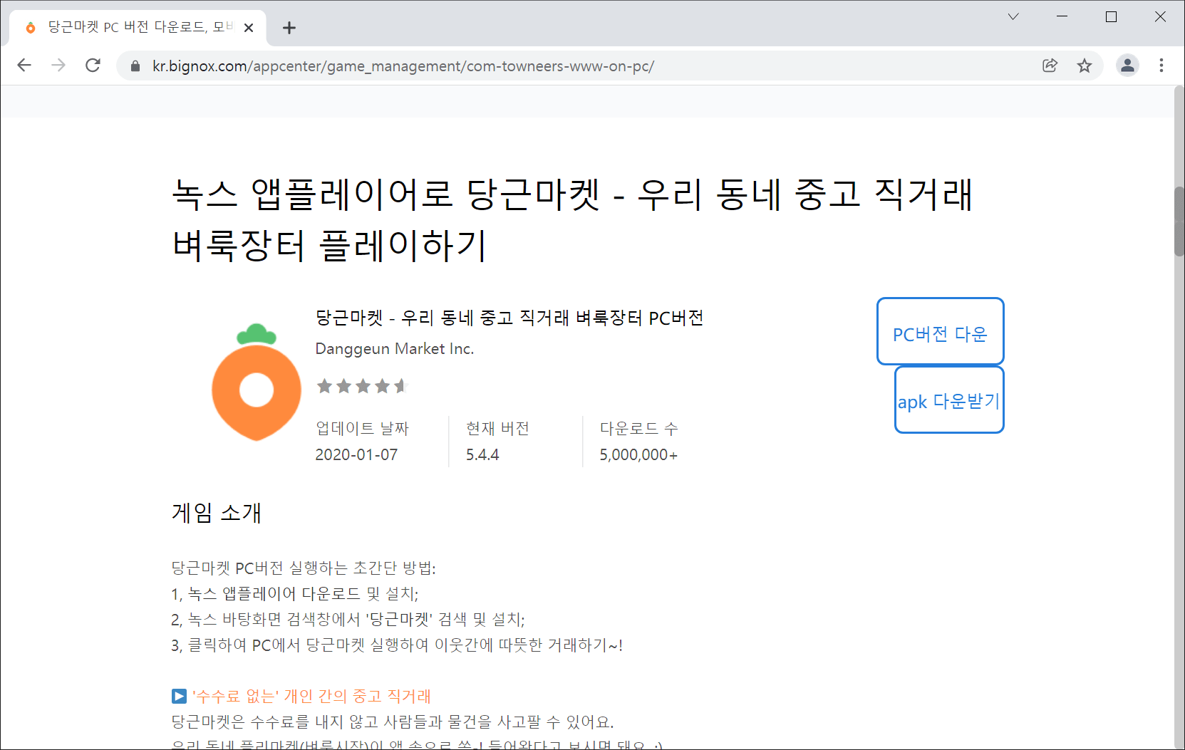 녹스앱플레이어 당근마켓 다운로드