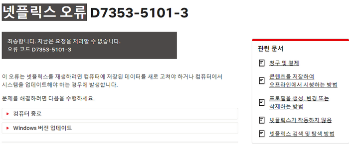 한국에서 자주 나오는 넷플릭스 오류 코드
