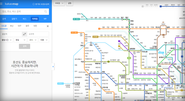 - 카카오맵은 깔끔한 디자인과 직관적인 노선도를 제공합니다.