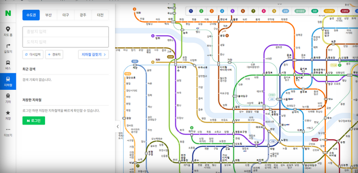 - 네이버 지도 홈페이지에서는 사용자가 쉽게 쓸 수 있는 지도 인터페이스를 제공합니다.