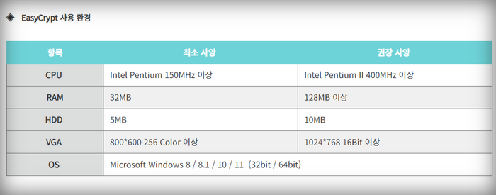 - 모든 파일의 암호화와 복호화 지원