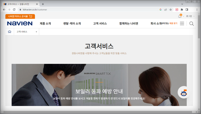 무슨 기계든 문제는 발생할 수 있어요. 만약 보일러 전원에 문제가 있거나 기타 이상 증상을 발견하시면, 바로 경동나비엔 고객센터에 연락하세요!