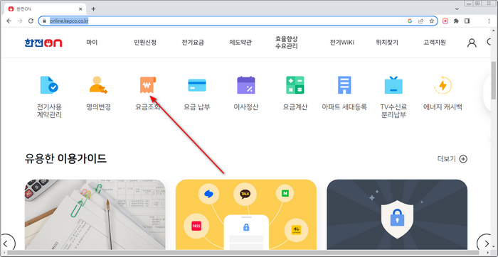 - 한전 사이버지점이 없어지고 이제는 한전온(https://online.kepco.co.kr/)을 이용해야 합니다. 이곳에서 간단하게 온라인으로 요금을 조회할 수 있습니다.